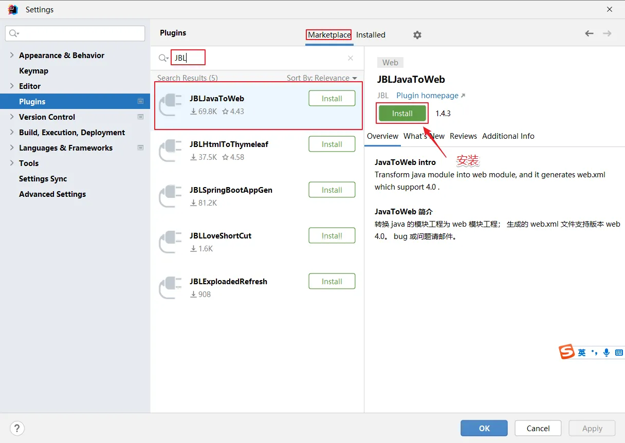 安装JBLJavaToWeb插件。