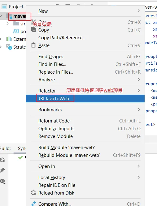 右键项目,使用插件快速补全web项目结构。