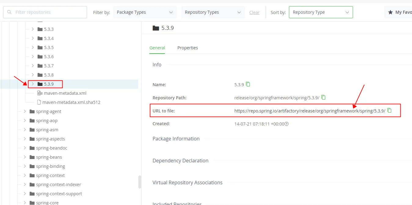继续在springframework目录下找下图的spring,点开之后你会看到很多不同的版本