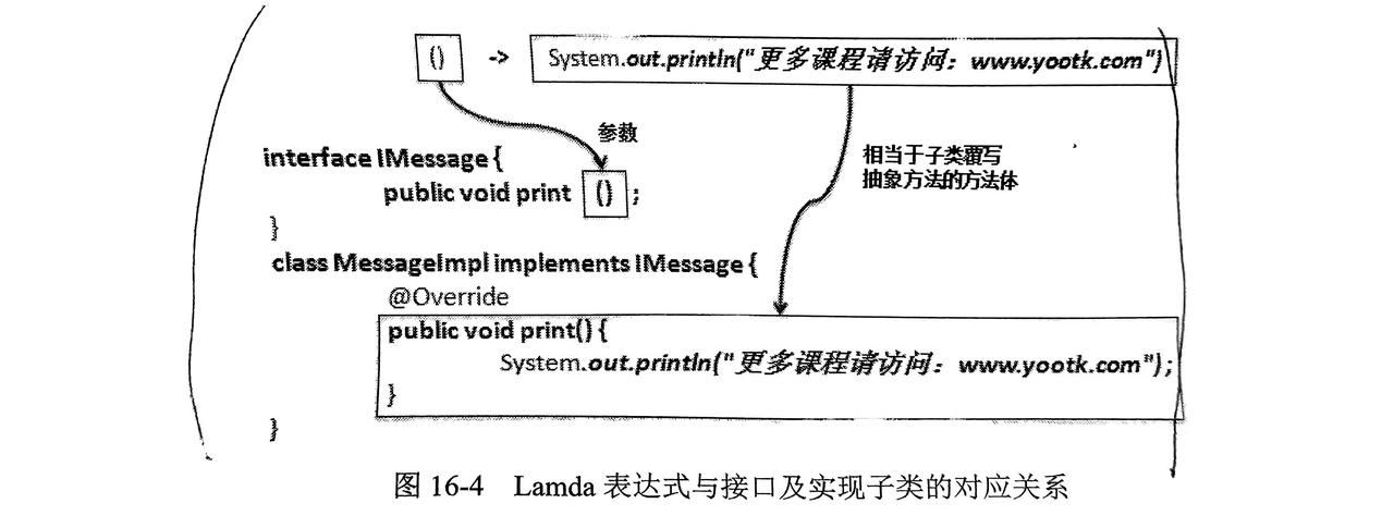 // Lambda表达式;括号内表示我实例化了一个实现IMessage接口的类并只重写了方法,并作为参数
